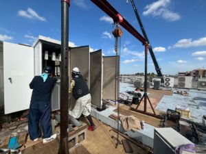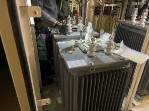 キュービクル内のトランスのみの交換実績も多数ございます。地下キュービクル等の難所でも重量鳶さんと連携しながらスムーズに工事を進められます。