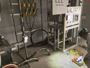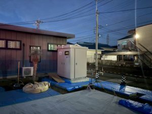 設備拡張に伴る低圧から高圧への切り替え工事を実施しています。容量計算・キュービクルの設計・搬入・据付、引込柱の建柱、PASの取付、高圧ケーブル敷設、低圧ケーブル敷設を全て自社で行うことが可能です。